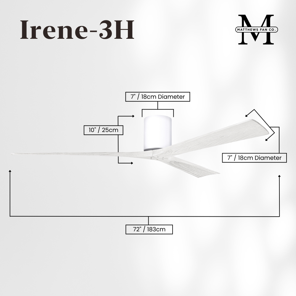 Irene-3H - Three Blade Flush Mount Paddle Fan - 72" - Gloss White Finish - Matte White Blades