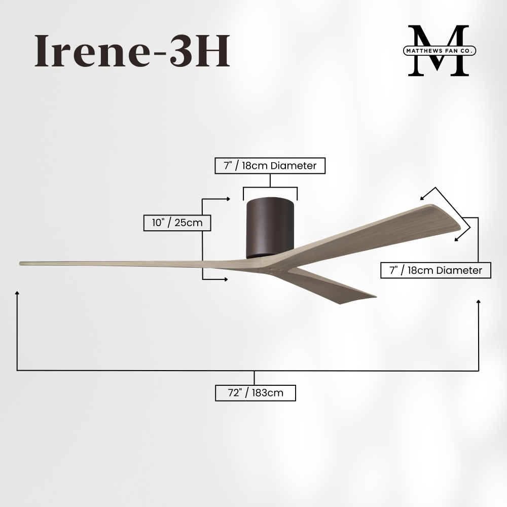 Irene-3H - Three Blade Flush Mount Paddle Fan - 72" - Textured Bronze Finish