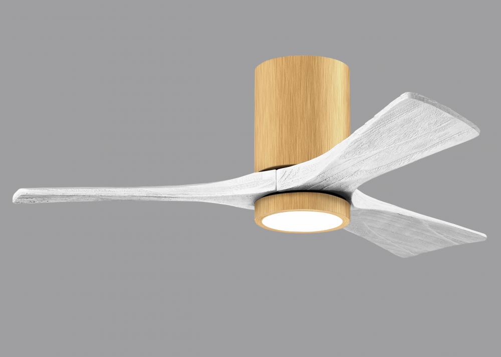 Irene-3HLK-42" Three Blade Flush Mount Paddle Fan-5CCT Integrated LED -Light Maple Tone Finish