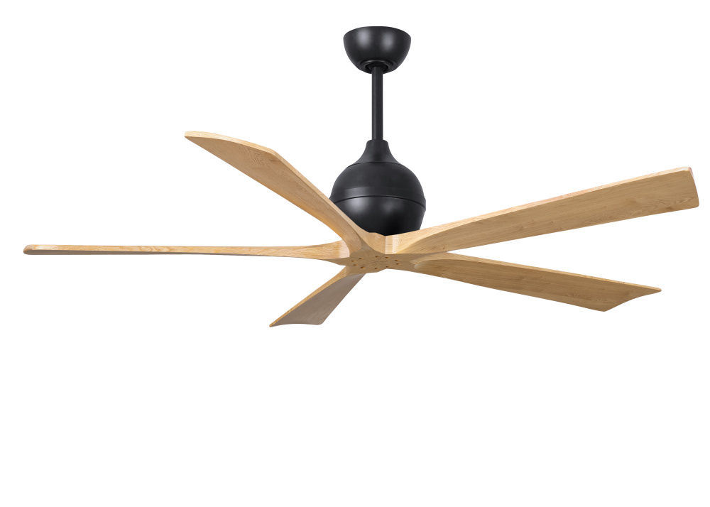 Irene-5 - 60" Five Blade Paddle Fan - Matte Black Finish - Light Maple Tone Blades