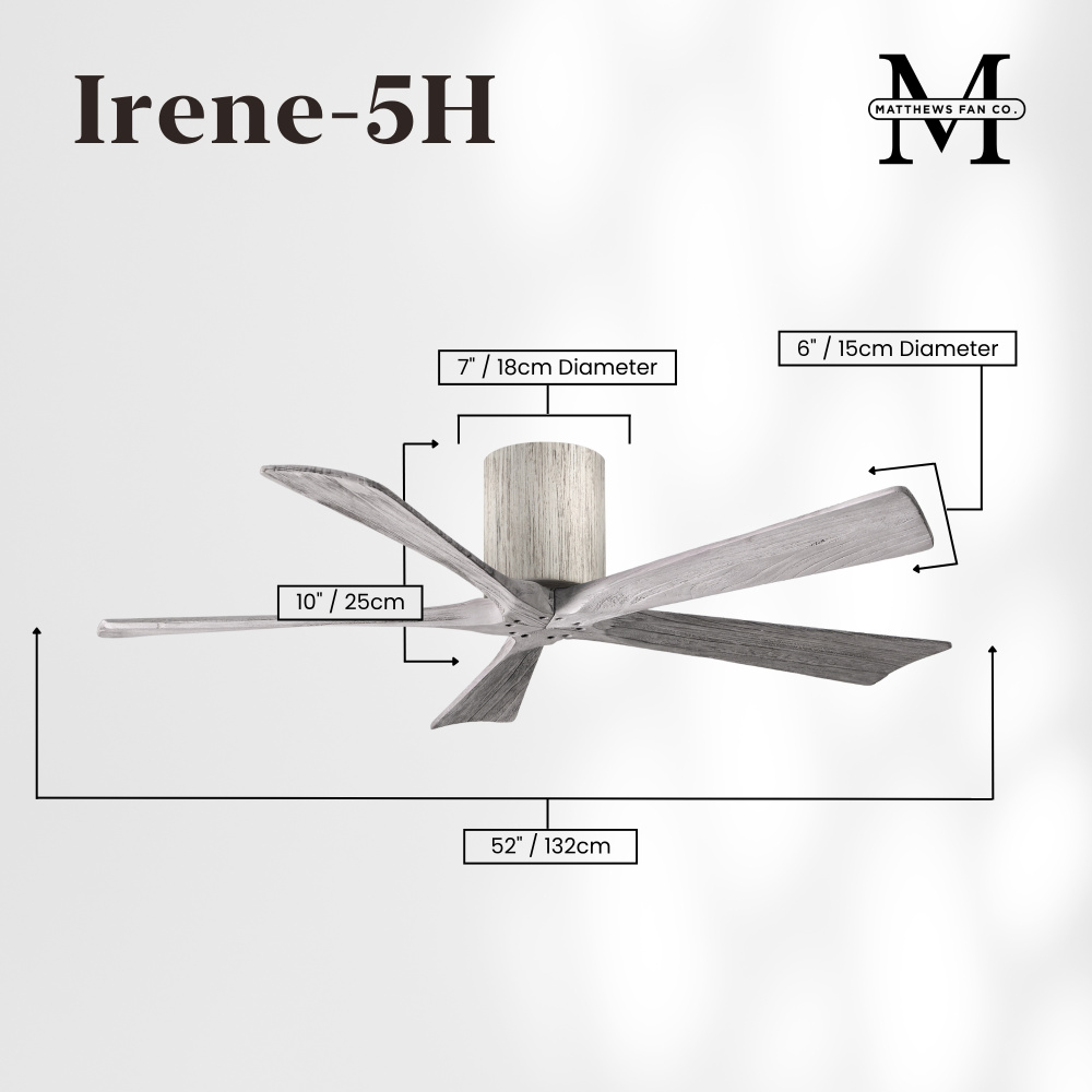 Cutting a figure like no other, the Irene-5H is rustic, yet strikingly modern design that transforms the look of any space it inhabits. Lauded by designers for how the solid wooden blades are neatly joined, this indoor ceiling fan makes your space feel cooler and more comfortable. The globe-shaped body makes the style more personable, and even helps uphold that signature minimal profile. With a timeless design, the Irene-5H brings a warm and natural feel to any modern home.