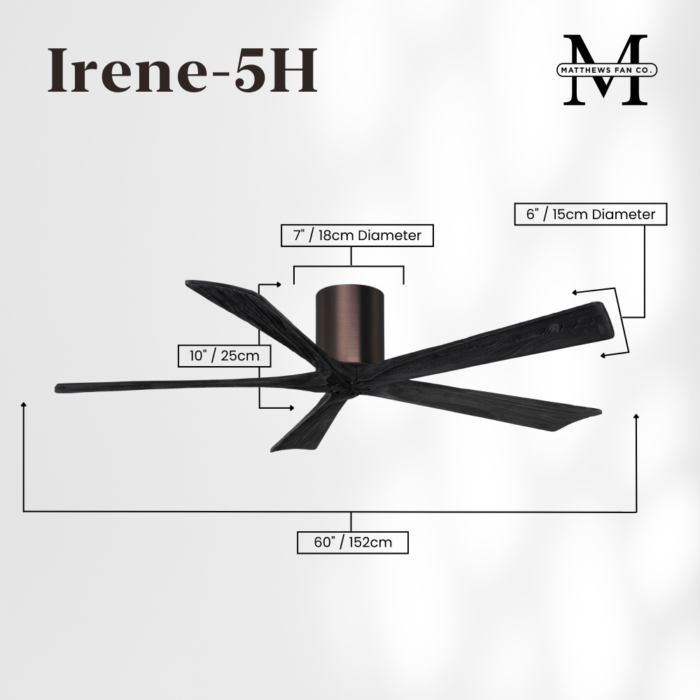 Irene-5H - 60" Five Blade Flush Mount Paddle Fan - Brushed Bronze Finish - Matte Black Blades