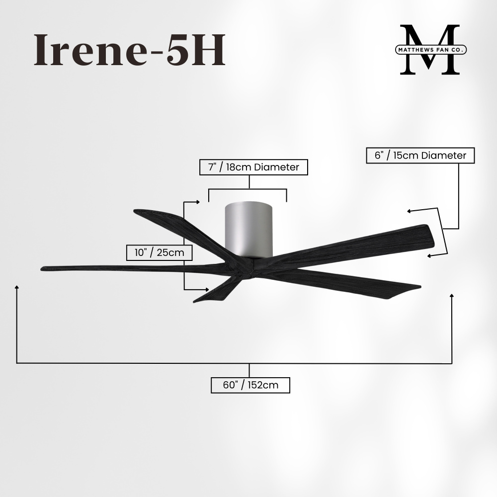 Irene-5H - 60" Five Blade Flush Mount Paddle Fan - Brushed Nickel Finish - Matte Black Blades