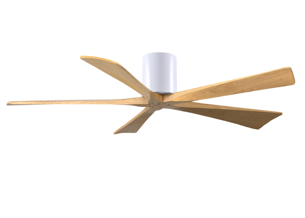 Irene-5H - 60" Five Blade Flush Mount Paddle Fan - Gloss White Finish - Light Maple Tone Blades