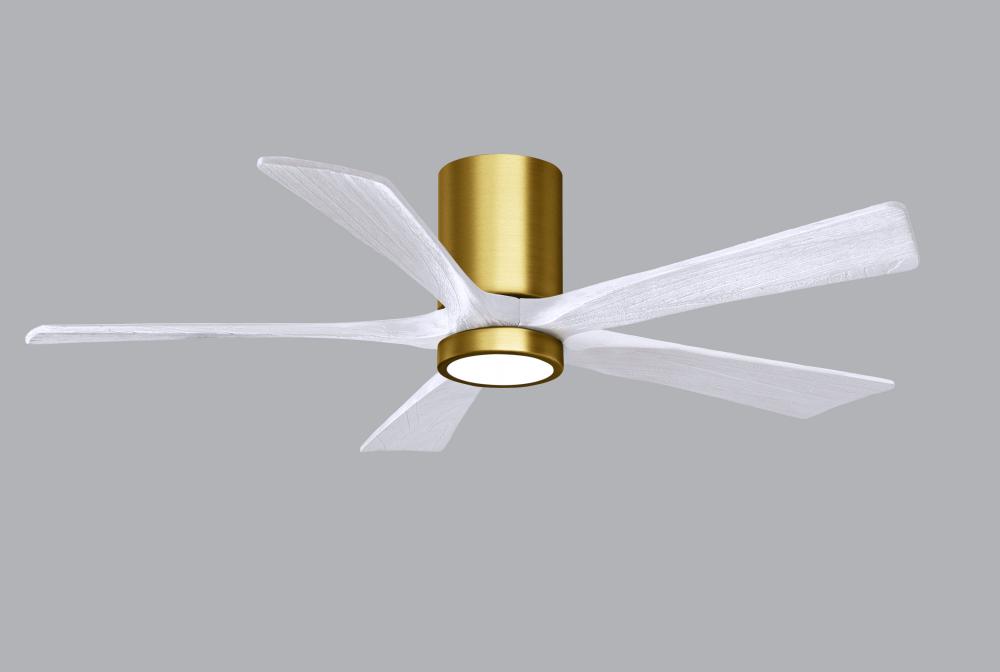 Irene-5HLK - 52" Five Blade Flush Mount Paddle Fan - 5CCT Integrated LED - Brushed Brass Finish