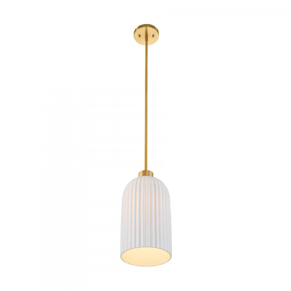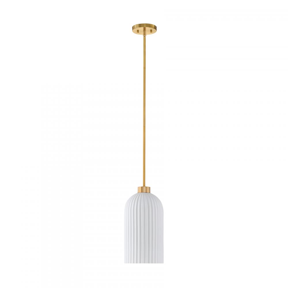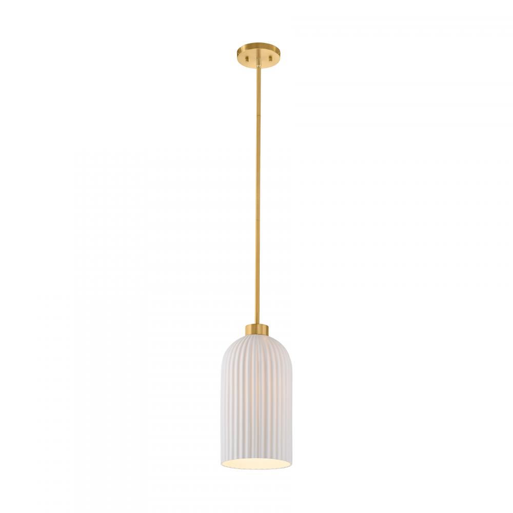 The Savoy House Isla Blanca 1-light pendant was designed by Breegan Jane, an award-winning interior designer and TV host. Breegan believes that luxe design is in the details, like the beautifully textured translucent porcelain shade that takes the spotlight here. When the light is on, the shade creates a flattering glow. When the light is off, it adds an eye-catching touch to any room. The Warm Brass finish amplifies the glamour. Isla Blanca is 13.75" in height and 8" in width. Uses one standard size bulb of up to 60 watts. The bulb is not included.