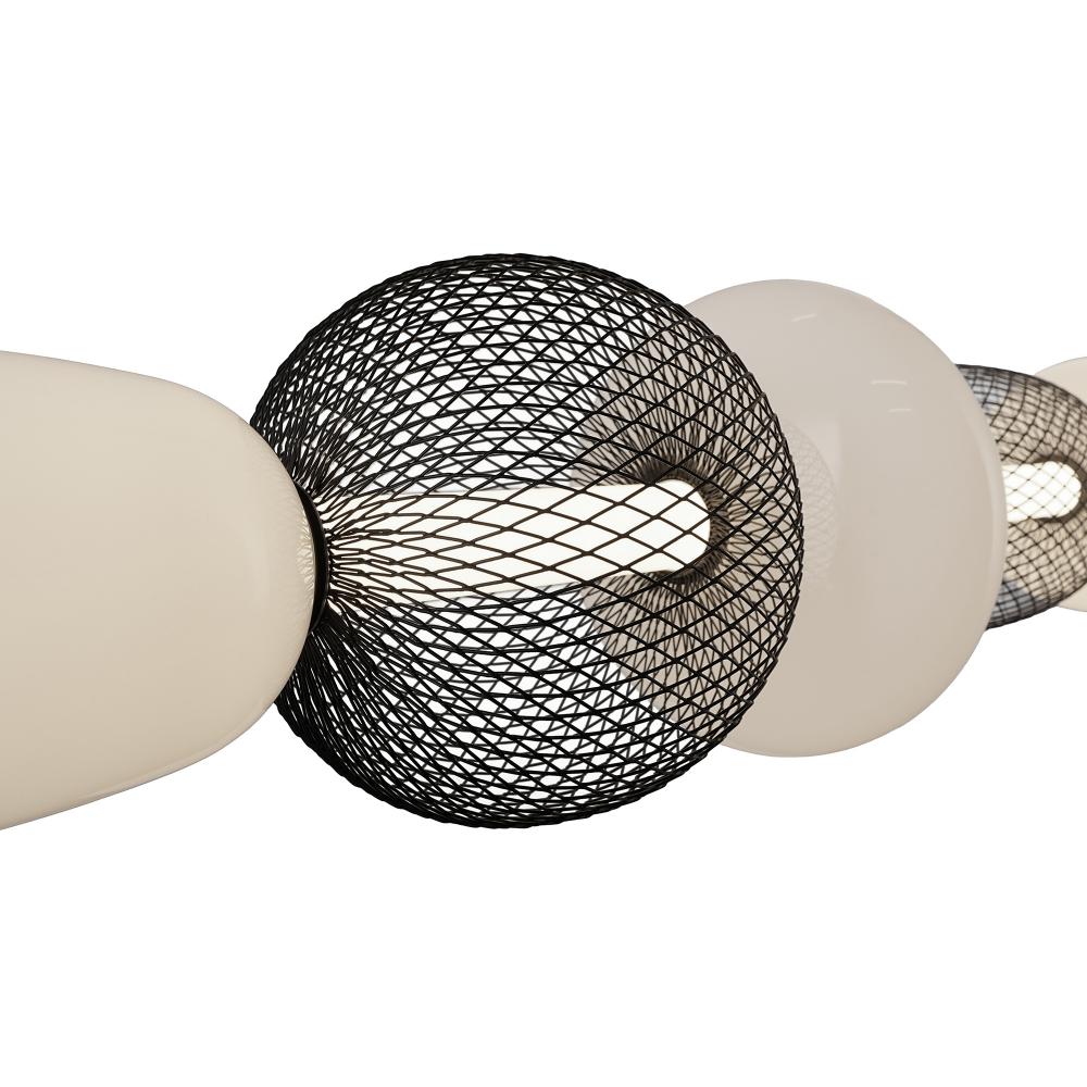 Elevate your space with the sophisticated charm of the Ace LED linear type chandelier. This masterpiece combines an opulent white glass shade with a bold black mesh design, encasing a radiant LED tube that casts a warm, inviting glow. Its rich black metalwork and adjustable wire offer timeless elegance with versatile functionality, making it a perfect centerpiece for any setting.