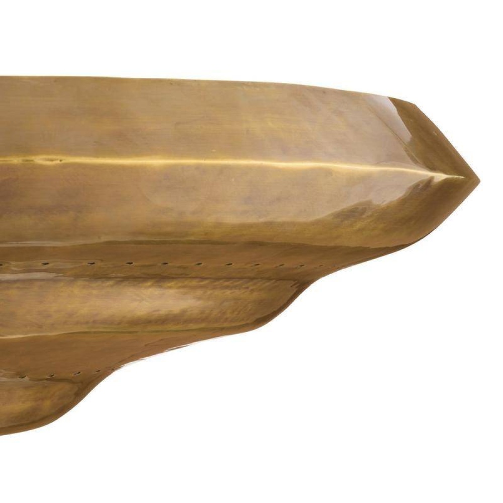 Based on a ceremonial plate, the burnished form of Istanbul is pierced by a textured column of smoke-luster glass to add extra intrigue to its eye-catching design. Hand-formed of antique brass-plated iron, this exotic fixture is finished with pierced details to allow illumination to shine through. Damp-rated, although limited covered outdoor conditions may affect finish. Finish will vary.