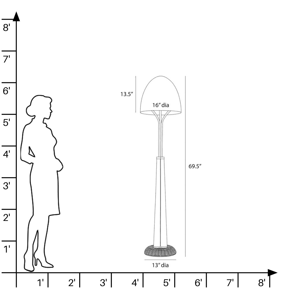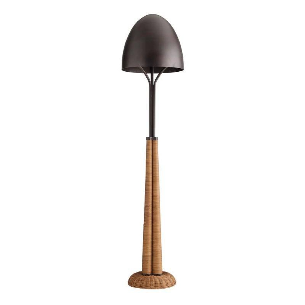 The reinvention of natural materials drove the design of our dramatic floor lamp. Classic wicker woven natural rattan combined with the Italia's muscular leg form topped by arms of English bronze-plated steel that disappear into the matching dome shade. Finish will vary.