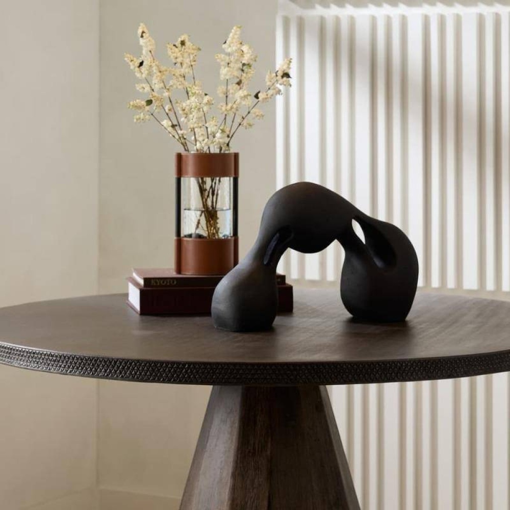 The tension inherent in pulling and stretching clay finds its reflection in the Jabari. Cast of charcoal ricestone composite, this piece makes the most of positive and negative space with intriguing cutouts, adding interest when viewed from multiple angles. Finish will vary.