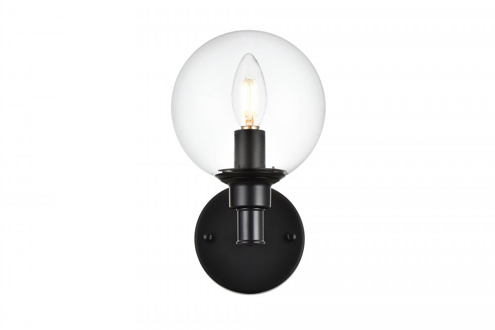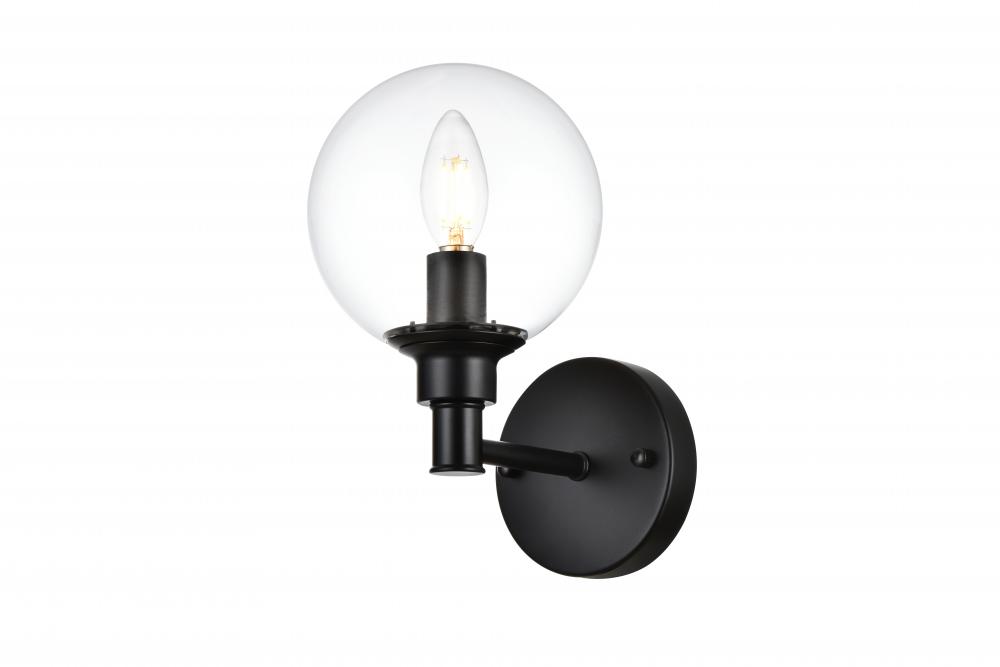 This armed sconce features a streamlined and minimalistic design that complements any space in your home. Shown with the clear glass shades, this wall sconce is versatile and can be placed in a bathroom,entry way, or hallway. Compatible with dimmers, so you'll have the right amount of light in any given time of the day. The hardwired fixture is safe to use in damp locations. Made from iron with a modern finish, it includes a round backplate and a matching arm that holds in place one 40W bulb ( sold separately). Available in multiple finishes. Can be installed as an uplight or a downlight.