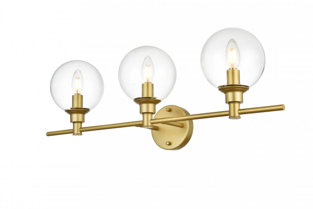 Jaelynn 3 light Brass and Clear Bath Sconce
