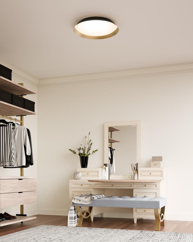Designed to be decorative in any space, the oversized metallic frames, available in black and gold, add artistic flair to its sleek design.