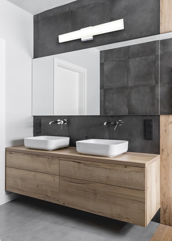 The JAVI LVL255A05CH is a modern LED vanity light in chrome. It features an integrated 20W LED, producing 2000 lumens at a 3000K color temperature. Measuring 4.375 inches wide, 24 inches high, and 2.375 inches deep, this dimmable fixture is perfect for adding contemporary flair to your bathroom.