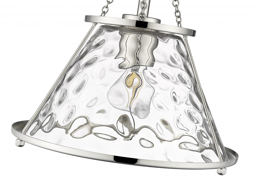 The Javis Collection blends beautiful metalwork with clear, textured glass for a singular appearance. Artistically constructed chains suspend the pendant from the ceiling and are replicated within the fixture, adding an extra touch of craftsmanship. These pendants will highlight any interior, whether finished in matte black for a subdued look or in polished nickel for a glimmering effect.