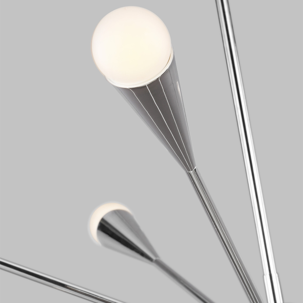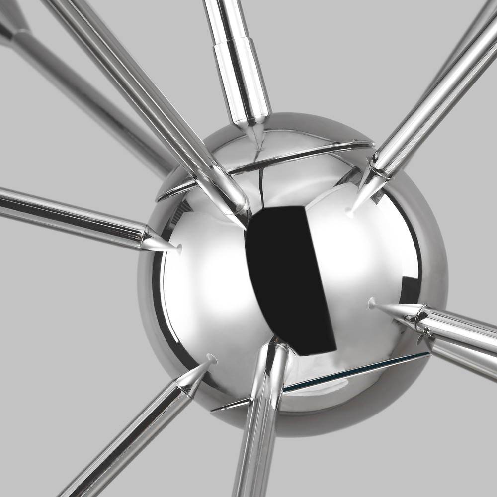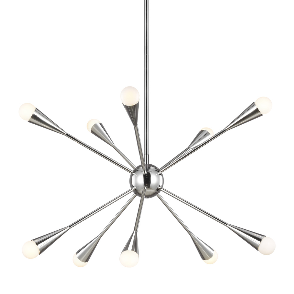 The Jax ten light single tier chandelier in polished nickel is the perfect way to achieve your desired fashion or functional needs in your home. Jax channels the celestial allure of a starburst silhouette, celebrating its iconic status within classic art deco design. Three finish options - including Burnished Brass, Polished Nickel and a stunning two-tone Midnight Black/Burnished Brass combination - make a refreshingly modern statement.