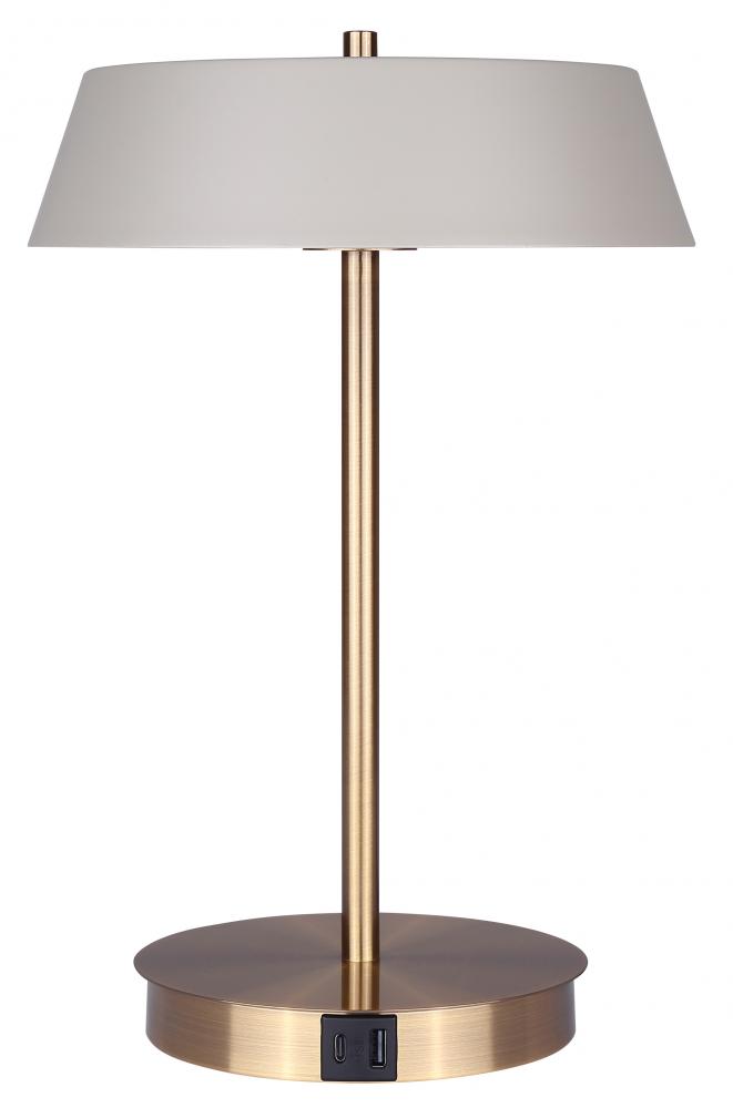 The Jessa LED table lamp combines style and functionality in one sleek design. Finished in Gold + MGY color, this lamp features opal glass and comes with integrated LED technology, offering dimmable illumination with 3 CCT switch options (3000K, 4000K, 5000K). With a touch on and off feature and USB and Type-C ports, this lamp provides convenience and versatility. The dimensions are 9 inches in width and 14.25 inches in height.
