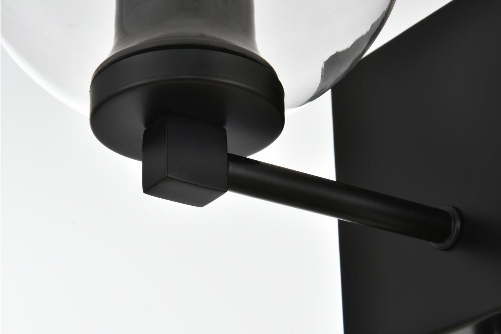 Defined by a sleek metal arm extends to suspend the clear spherical glass shade. A contemporary stunner, it shows off the straight line details from the backplate and the streamline thin metal arm. Compatible with dimmers, so you'll have the right amount of light in any given time of the day. Completely versatile, you can place this wall light as an uplight or downlight. Rated for use in damp locations, this will work perfectly over a vanity in your bathroom.