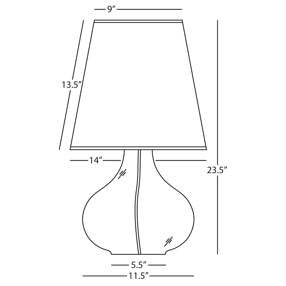 Junes exaggerated curves give this lamp a slightly funky feel that adds just the right amount of attitude to a space. - Clear Glass Body with Black Fabric Wrapped Cord June Table Lamp with White Organza Fabric Shade