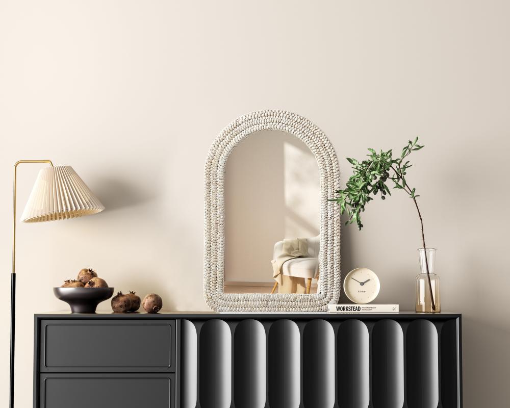 Transform your space with this stunning wall mirror that blends natural charm with functional design. Crafted from MDF, cornhusk, and high-quality mirror, the textured woven frame brings warmth and character to your decor. Whether you're decorating a hallway, living room, or bedroom, this mirror comes in a variety of shapes—including rectangle, round, oval, and arch—along with multiple size options to perfectly suit your needs. Designed for versatility, the mirror features two inset metal hangers, allowing you to mount it vertically with ease. Its reflective surface not only adds a touch of brightness but also creates the illusion of a larger room, enhancing your space. with durable materials and ready-to-hang hardware, this mirror is as practical as it is stylish, making it a must-have piece for any home.