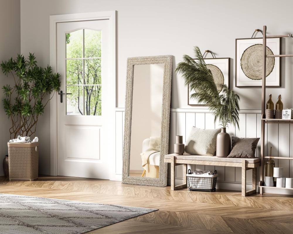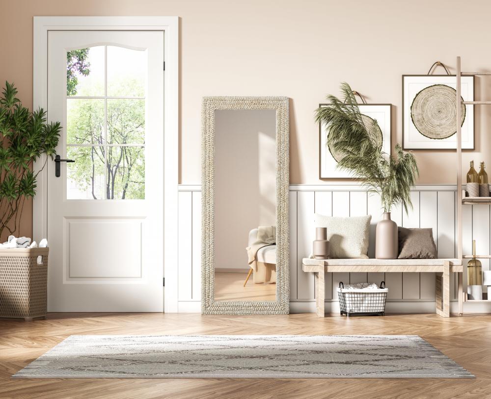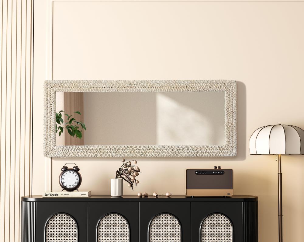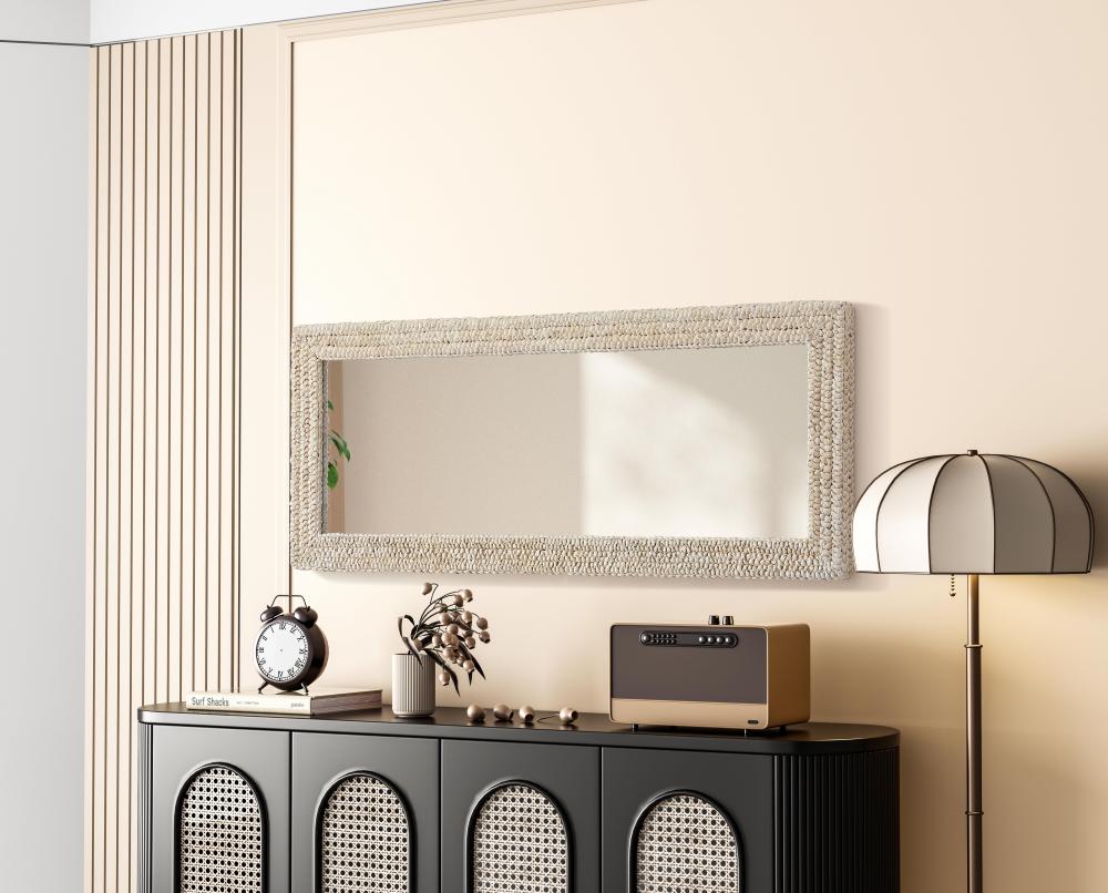Transform your space with this stunning wall mirror that blends natural charm with functional design. Crafted from MDF, cornhusk, and high-quality mirror, the textured woven frame brings warmth and character to your decor. Whether you're decorating a hallway, living room, or bedroom, this mirror comes in a variety of shapes—including rectangle, round, oval, and arch—along with multiple size options to perfectly suit your needs. Designed for versatility, the mirror features four inset metal hangers, allowing you to mount it either vertically or horizontally with ease. Its reflective surface not only adds a touch of brightness but also creates the illusion of a larger room, enhancing your space. with durable materials and ready-to-hang hardware, this mirror is as practical as it is stylish, making it a must-have piece for any home.
