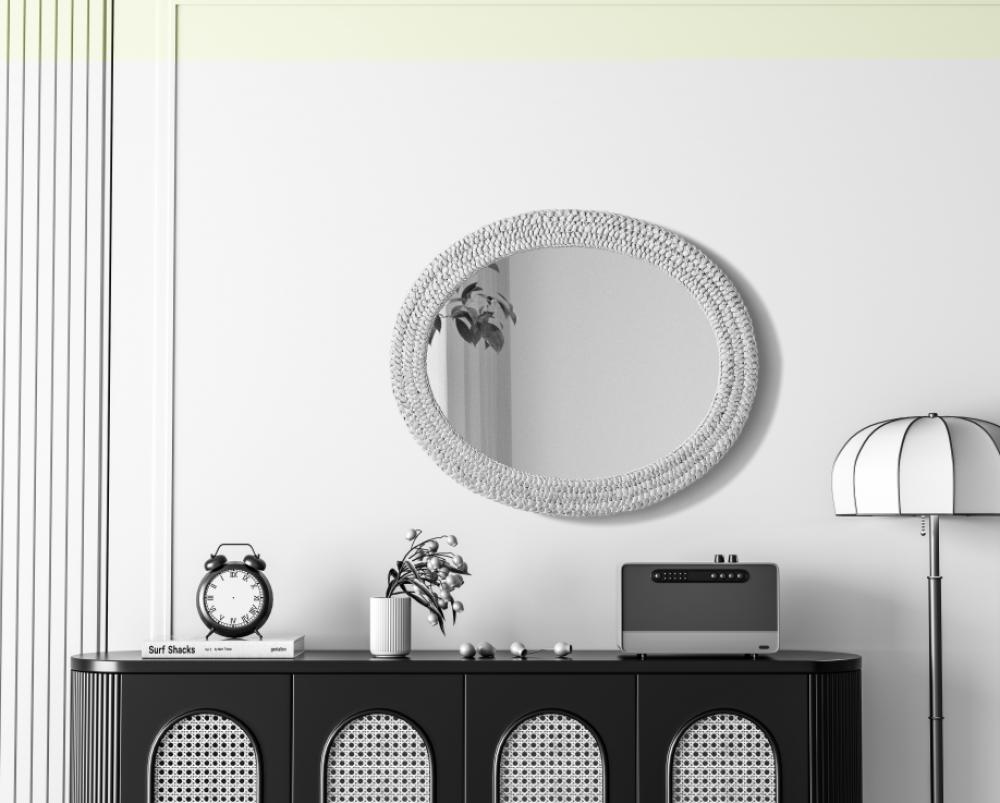 Transform your space with this stunning wall mirror that blends natural charm with functional design. Crafted from MDF, cornhusk, and high-quality mirror, the textured woven frame brings warmth and character to your decor. Whether you're decorating a hallway, living room, or bedroom, this mirror comes in a variety of shapes—including rectangle, round, oval, and arch—along with multiple size options to perfectly suit your needs. Designed for versatility, the mirror features three inset metal hangers, allowing you to mount it either vertically or horizontally with ease. Its reflective surface not only adds a touch of brightness but also creates the illusion of a larger room, enhancing your space. with durable materials and ready-to-hang hardware, this mirror is as practical as it is stylish, making it a must-have piece for any home.