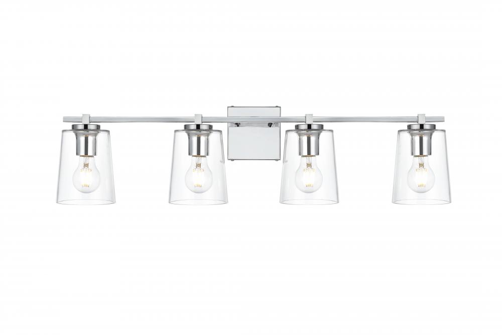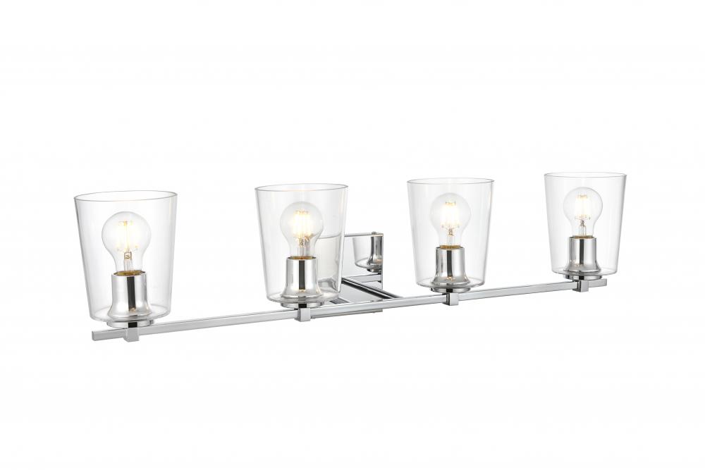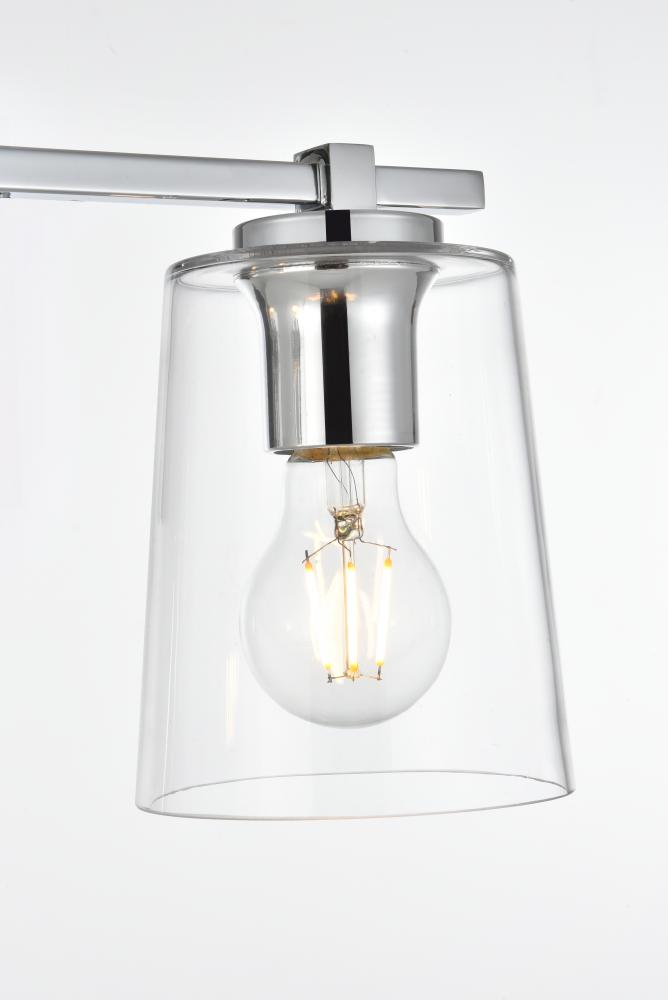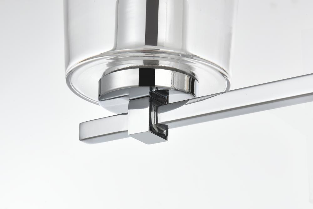 Defined by a sleek metal arm extends to suspend the clear cylinder glass shade. A contemporary stunner, it shows off the straight line details from the backplate and the streamline thin metal arm. Compatible with dimmers, so you'll have the right amount of light in any given time of the day. Completely versatile, you can place this wall light as an uplight or downlight.