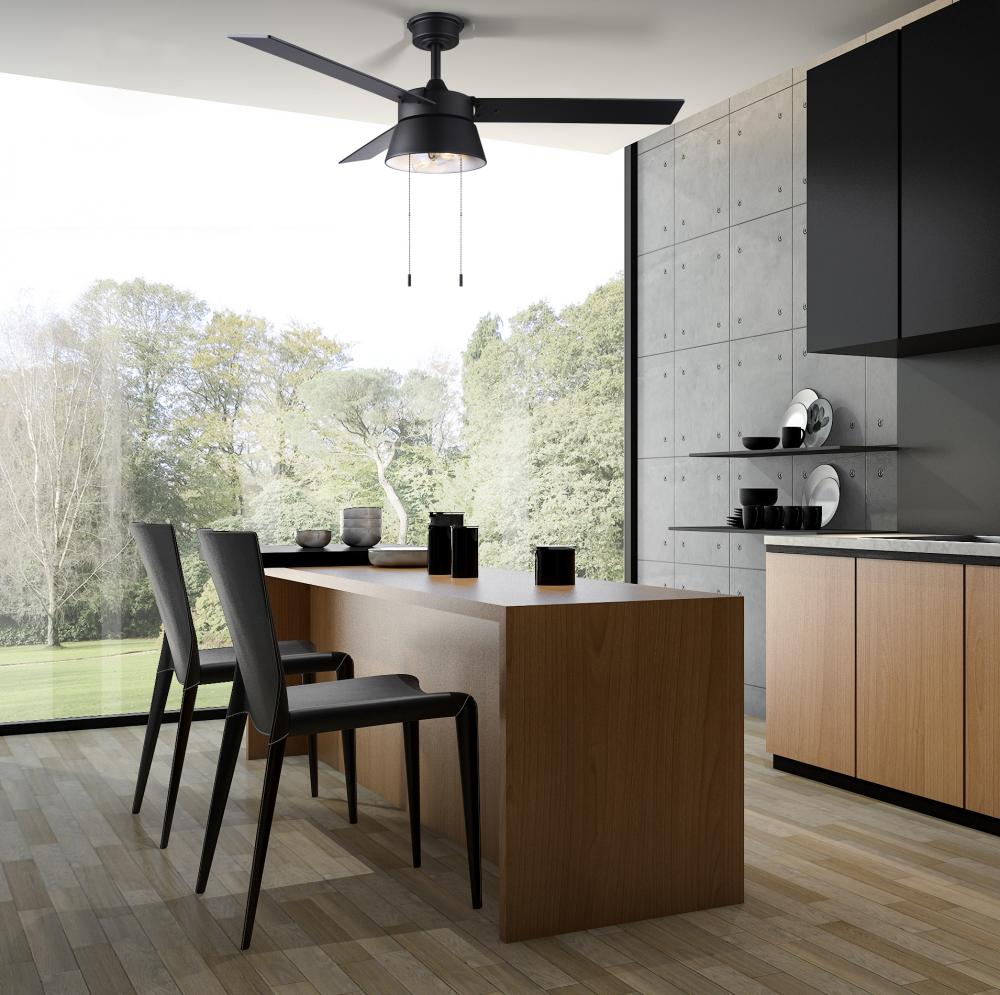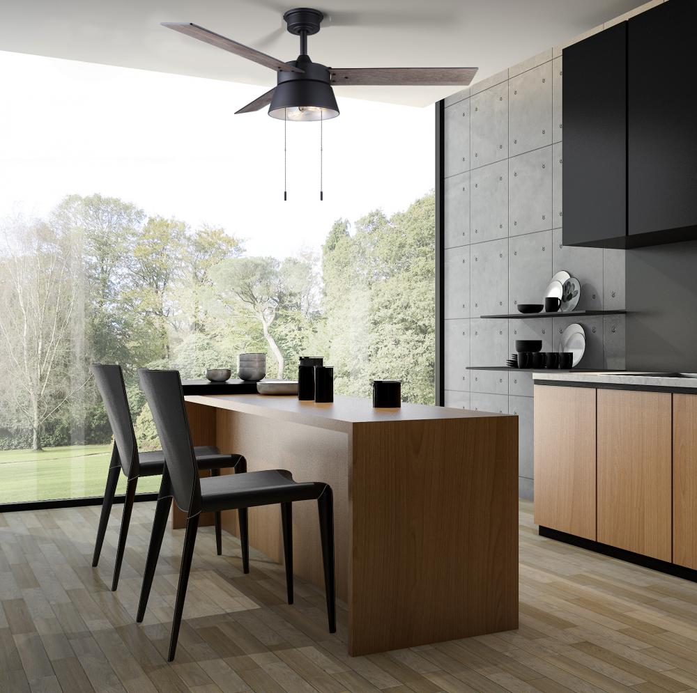 Contemporary Charm: Enhance the comfort and style of your living space with the Kade 48-inch Ceiling Fan, featuring a Matte Black finish and blades in 7# and 1020-2 Blade Color that exude contemporary charm.