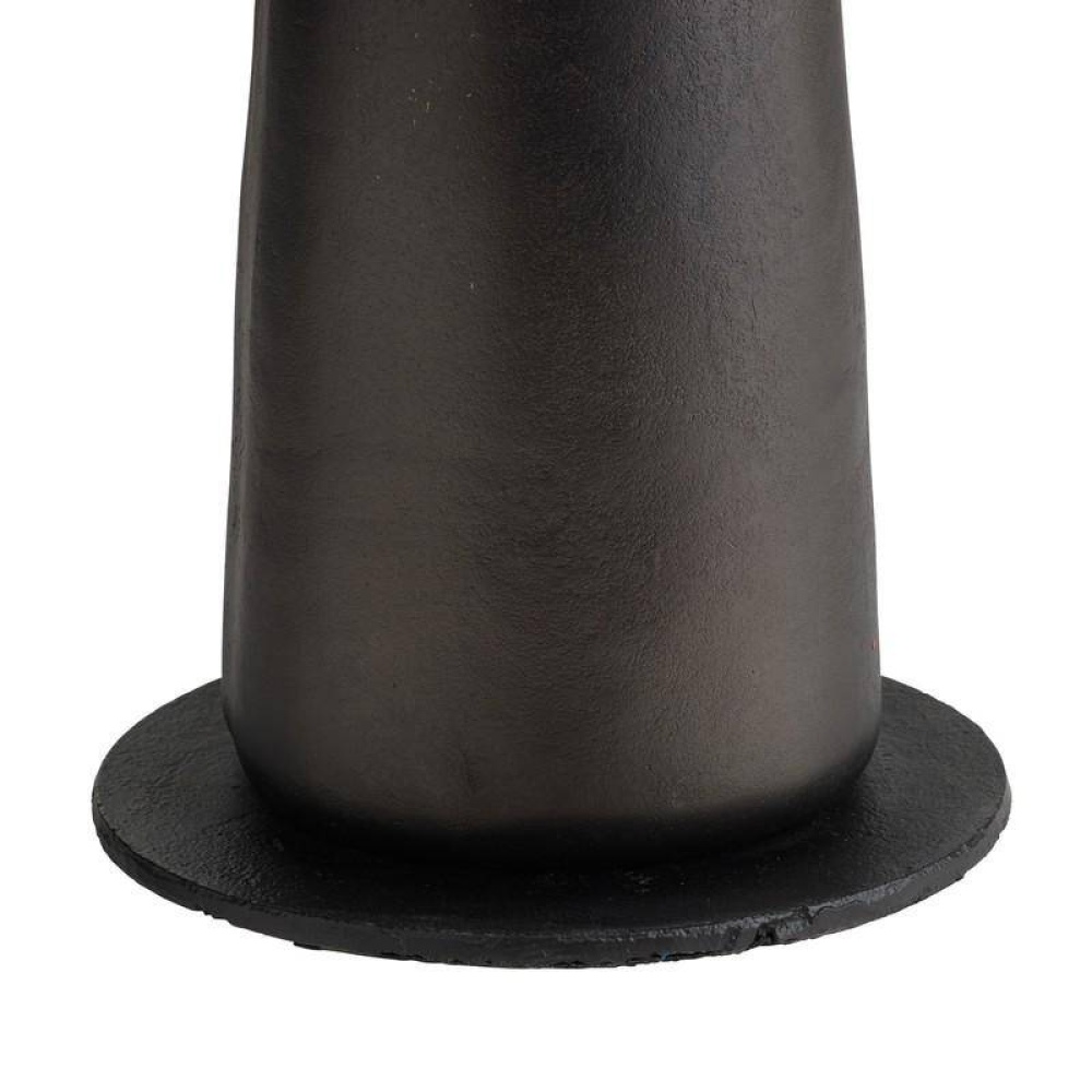 Carved details along the Kash's curvaceous base give this antiqued aluminum floor lamp an embodied energy. Reaching upward from the rounded base, this sculptural style was designed to provide maximum illumination throughout the room. It is accented with a classic white linen drum shade lined in white cotton, polished nickel hardware, and matching antiqued aluminum finial. Finish will vary.