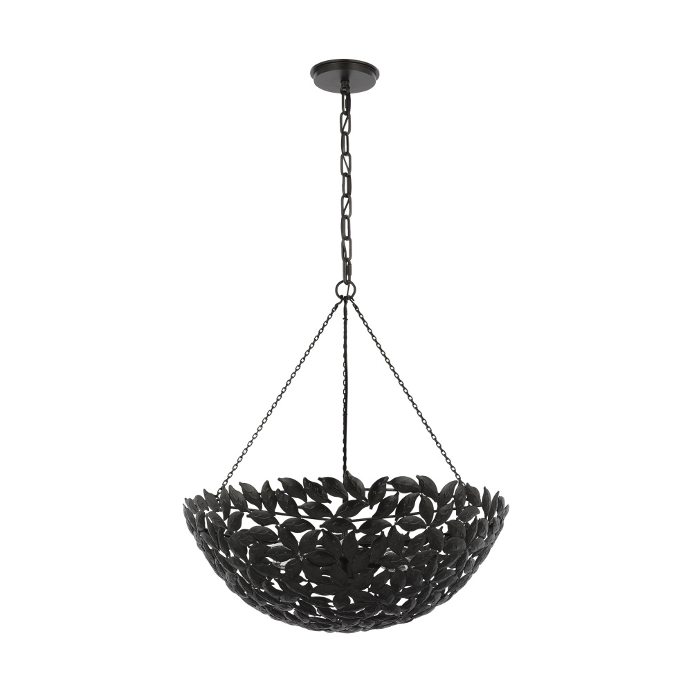 Drawing inspiration from a classic bowl pendant and nature. The Kelan series by Alexa Hampton features a leaf motif, detailed by hand in a stunning display that captivates the design. Crafted with meticulous attention to detail, the delicate motif leaves gracefully cascade from the central fixture, casting a warm and inviting glow Kelan is a soft, feminine contemporary piece that is beautiful in any space. Available sizes include small, medium, and large lanterns.