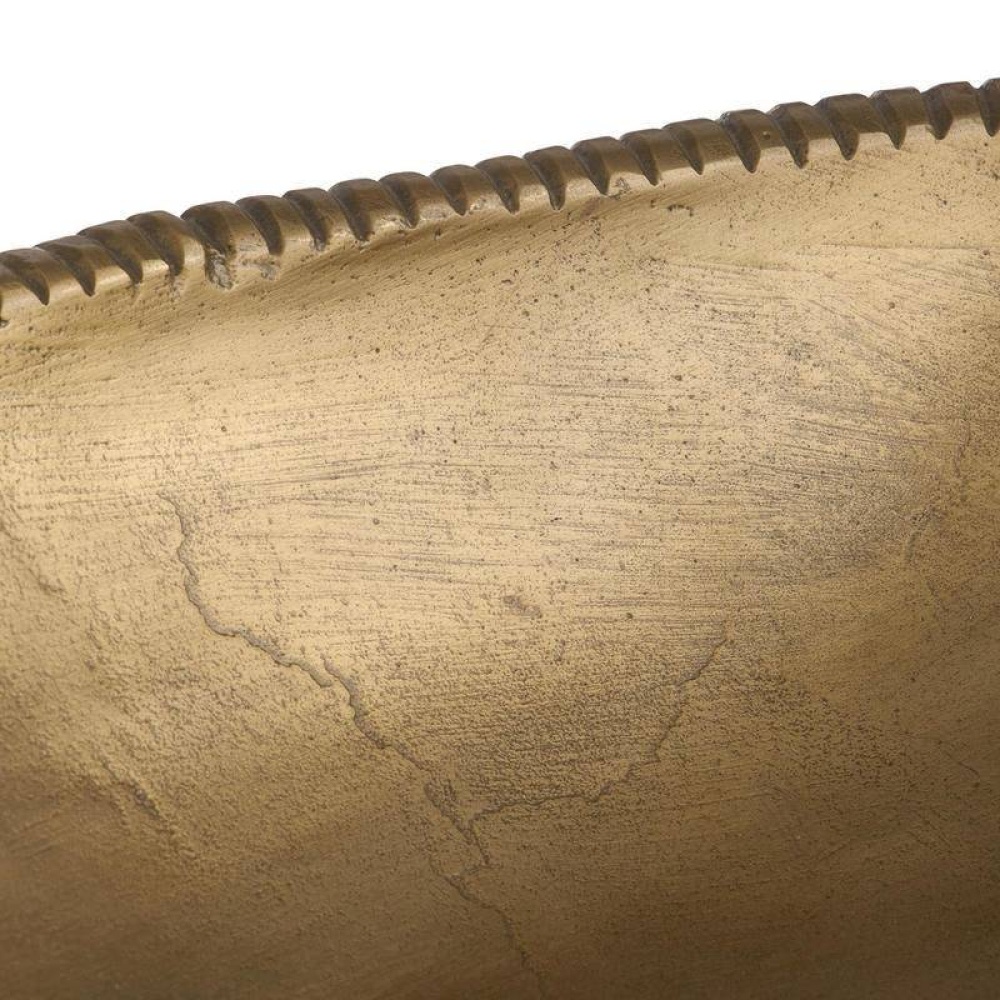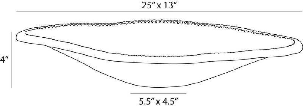 Cast of antique brass aluminum, this shallow vessel has an organic shape that reflects the free forms found in nature. Accented with a serpentine edge detail. Felted bottom. Finish will vary.