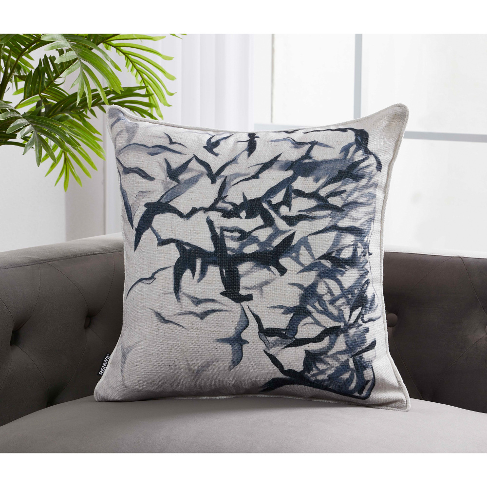 This pillow takes the traditional portrait print and gives it an intriguing twist. Constructed of natural linen, it has a inherent soft quality that is optimally juxtaposed by the dark birds in its design. Styled solo or with complementing pieces, it is ideal for the eclectic space.