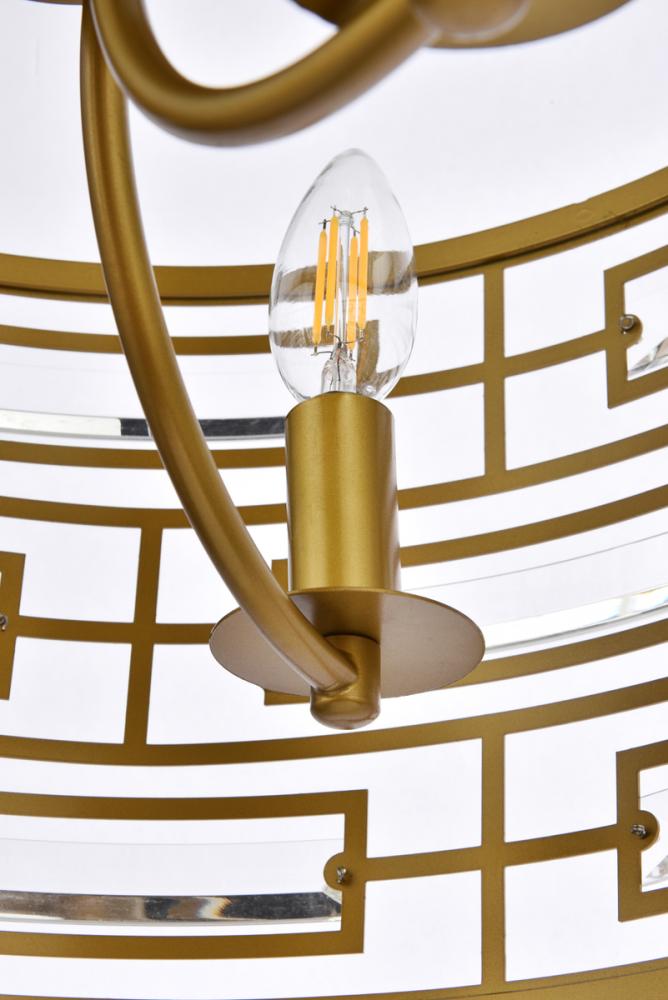 Clear rectangular crystals reflect the soft glow of candelabra bulbs