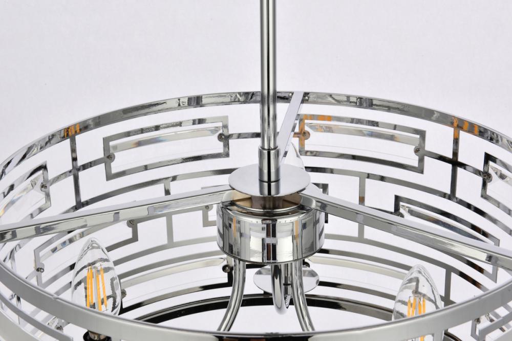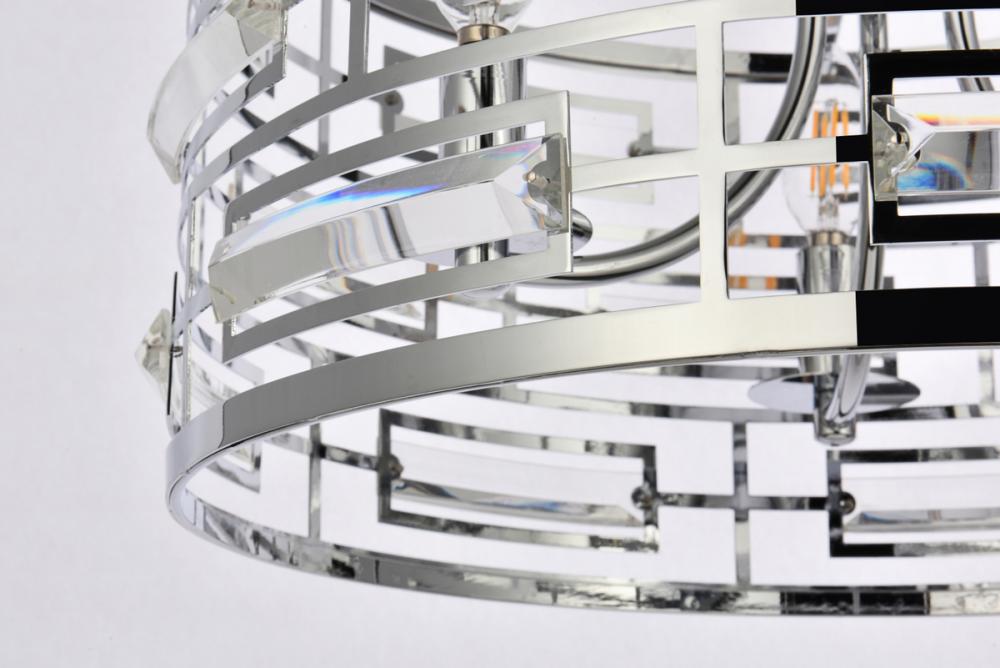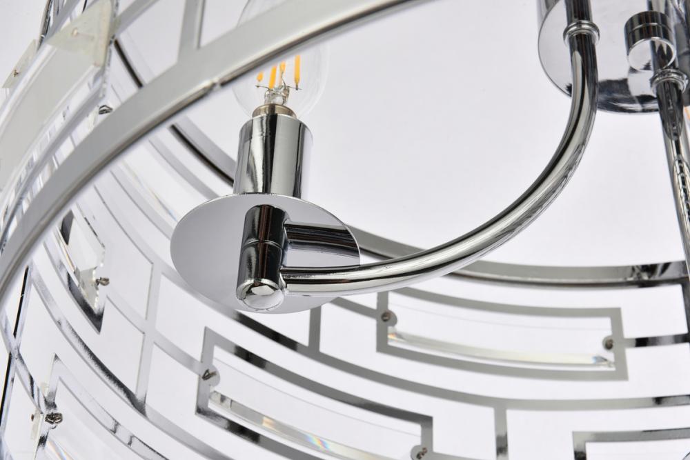 Clear rectangular crystals reflect the soft glow of candelabra bulbs