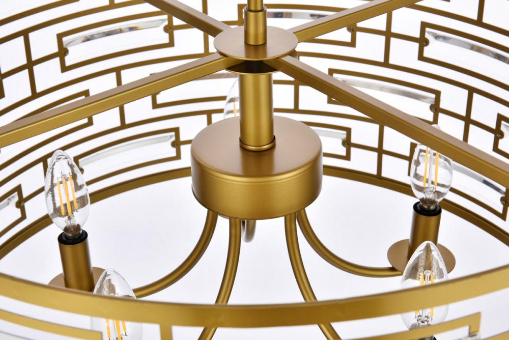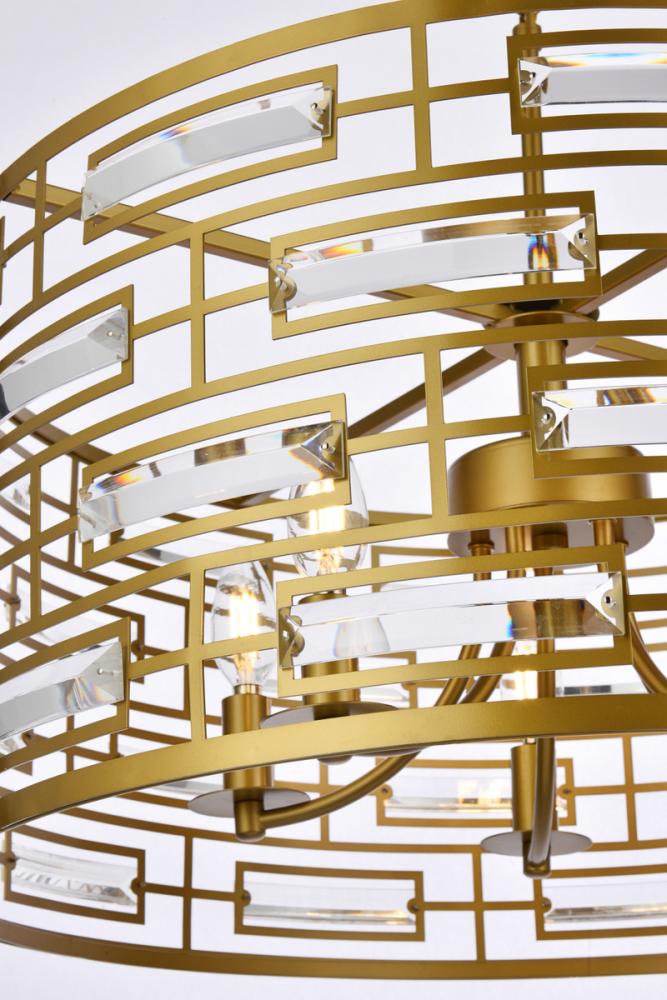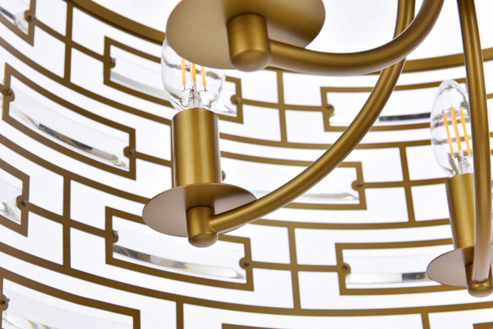 Clear rectangular crystals reflect the soft glow of candelabra bulbs