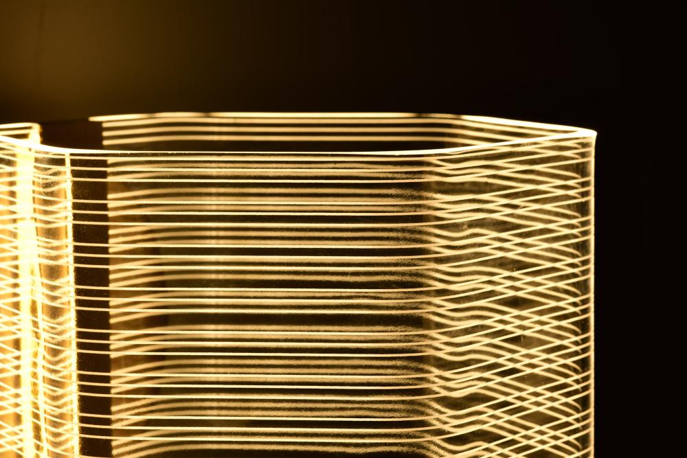 Unveil the art of Modern design with the Kenzo Collection, where bold geometric styling meets sculptural elegance. The parallel lines create a dynamic visual effect, blending symmetry with artistry for a look that captivates. Edge-lit acrylic shades provid