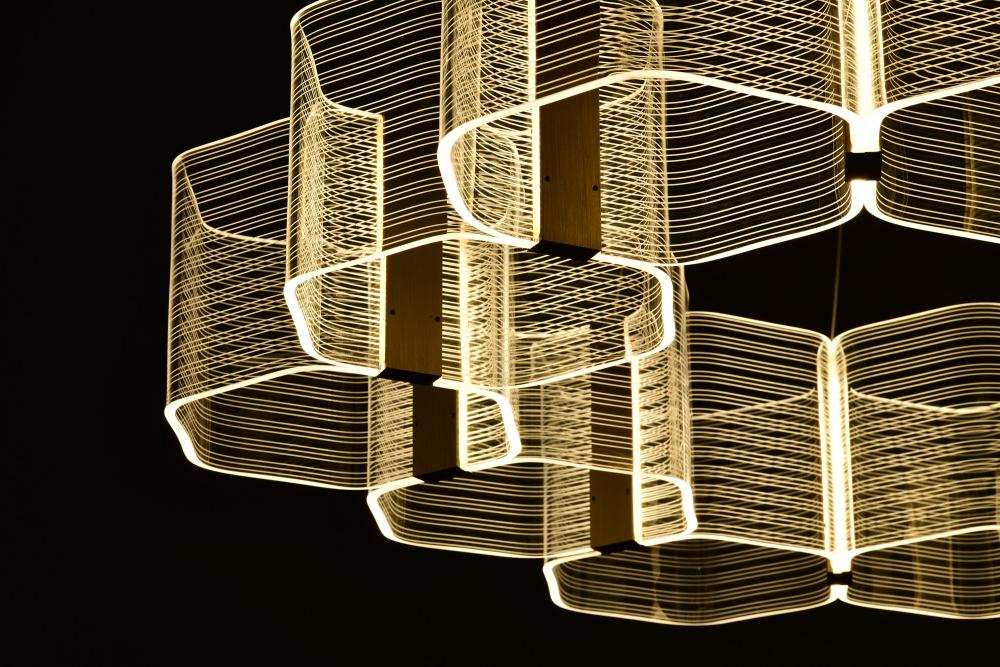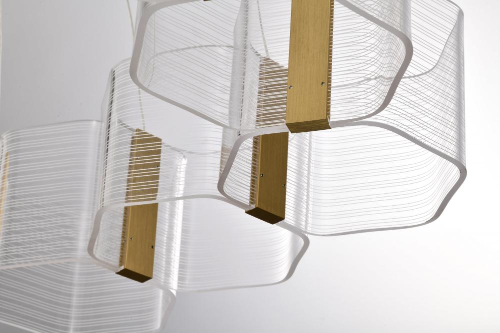 Unveil the art of Modern design with the Kenzo Collection, where bold geometric styling meets sculptural elegance. The parallel lines create a dynamic visual effect, blending symmetry with artistry for a look that captivates. Edge-lit acrylic shades provid