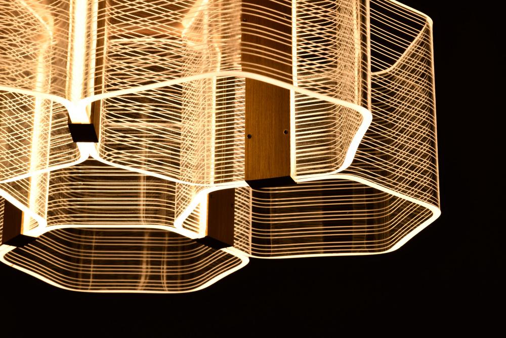 Unveil the art of Modern design with the Kenzo Collection, where bold geometric styling meets sculptural elegance. The parallel lines create a dynamic visual effect, blending symmetry with artistry for a look that captivates. Edge-lit acrylic shades provid