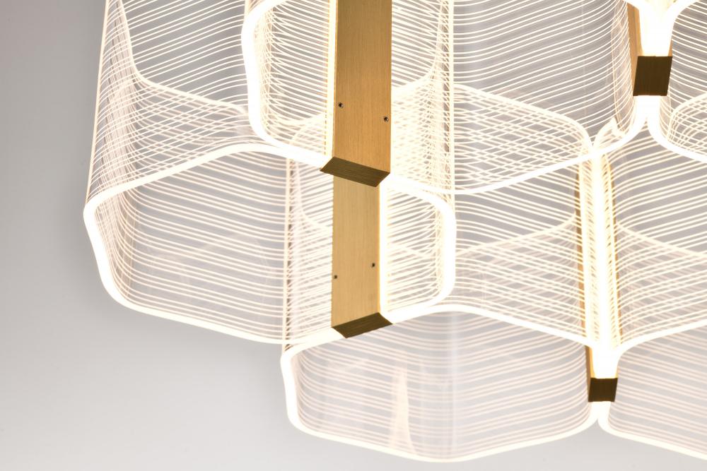 Unveil the art of Modern design with the Kenzo 62-2403 LED chandelier, where bold geometric styling meets sculptural elegance. The parallel lines create a dynamic visual effect, blending symmetry with artistry for a look that captivates. Edge-lit acrylic s