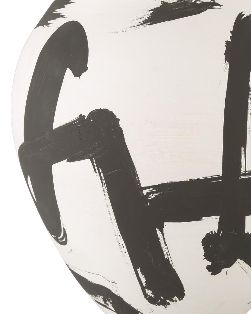 The sketched pattern on the surface of the Kenzo Large Vase was inspired by the art of Imperial Japan, particularly the Enso, a prolific symbol in the Zen practice of painting. Made of porcelain, the black and off-white vessel is finished on the inside; and it is hand-thrown, hand-glazed, and hand-decorated so the patterns on each vase will vary slightly.