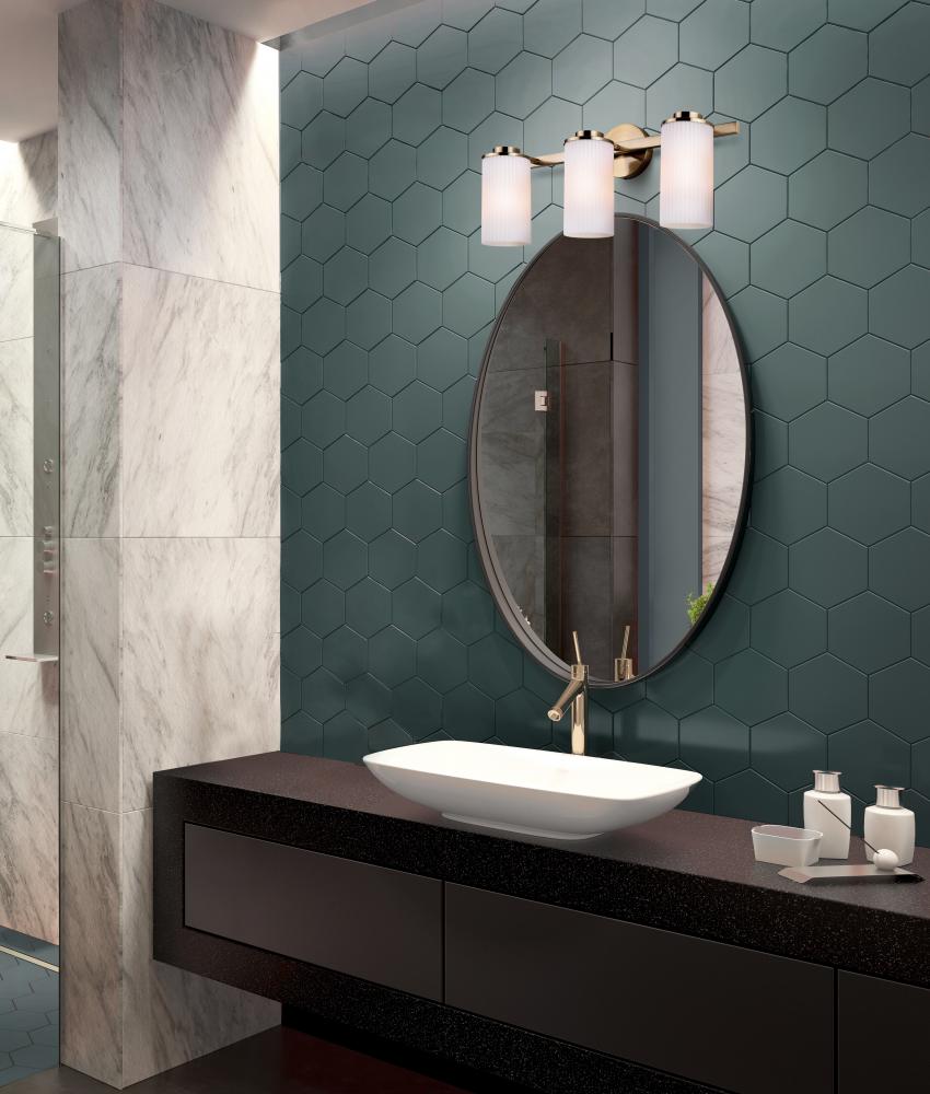 Elegant Design: Elevate your bathroom vanity with the KINSLEA 3 Light Vanity Fixture, featuring luxurious Gold accents that exude elegance and sophistication, enhancing the visual appeal of your space.