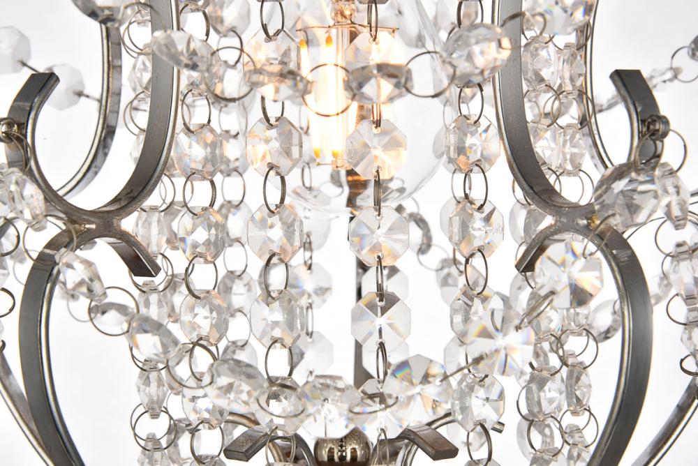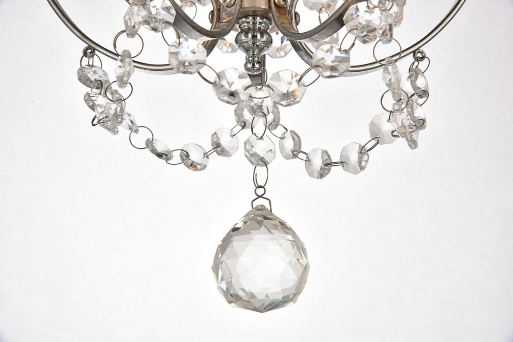 The fanciful look also features crystal spears and a multifaceted crystal ball suspended below.