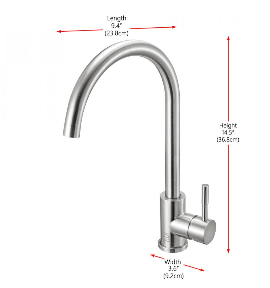 Introducing our efficient kitchen faucet featuring a single-handle lever for effortless water control, allowing precise adjustments to flow and temperature for simplified kitchen tasks. Crafted from high-quality stainless steel, this faucet ensures enduring performance and a sleek, modern design while resisting corrosion. Proudly UPC and IAPMO Certified, it guarantees safety and reliability. Perfect for compact spaces, our 14.5" height faucet combines simplicity and style, complementing kitchen decor while optimizing counter space for enhanced functionality. The gooseneck design adds elegance and practicality, facilitating easy washing of large utensils. With inclusive supply lines, installation becomes hassle-free, saving you valuable time. Delivering a maximum flow rate of 1.8 gallons per minute, it balances power and water efficiency, aiding in cost savings without compromising performance. Equipped with a high-quality ceramic cartridge, expect enduring, smooth, and drip-free operation for a seamless kitchen experience.