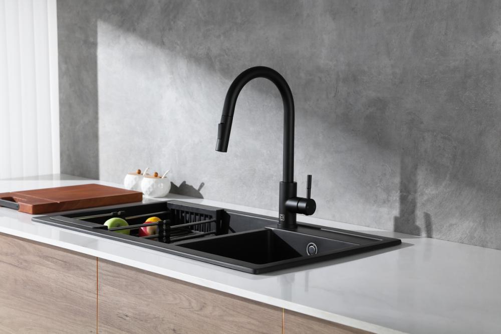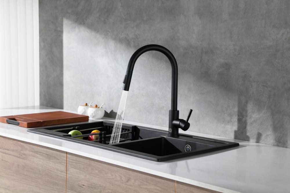 The retractable pull-down hose offers flexibility and reach, making it easier to rinse, clean, and fill various kitchen items. No more struggling to reach the corners of your sink.