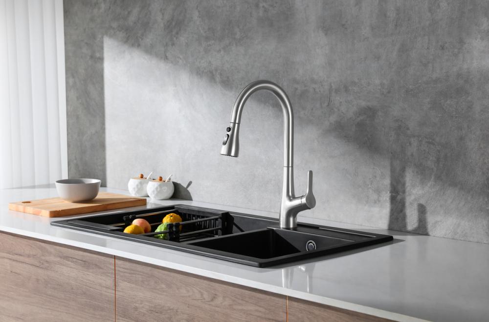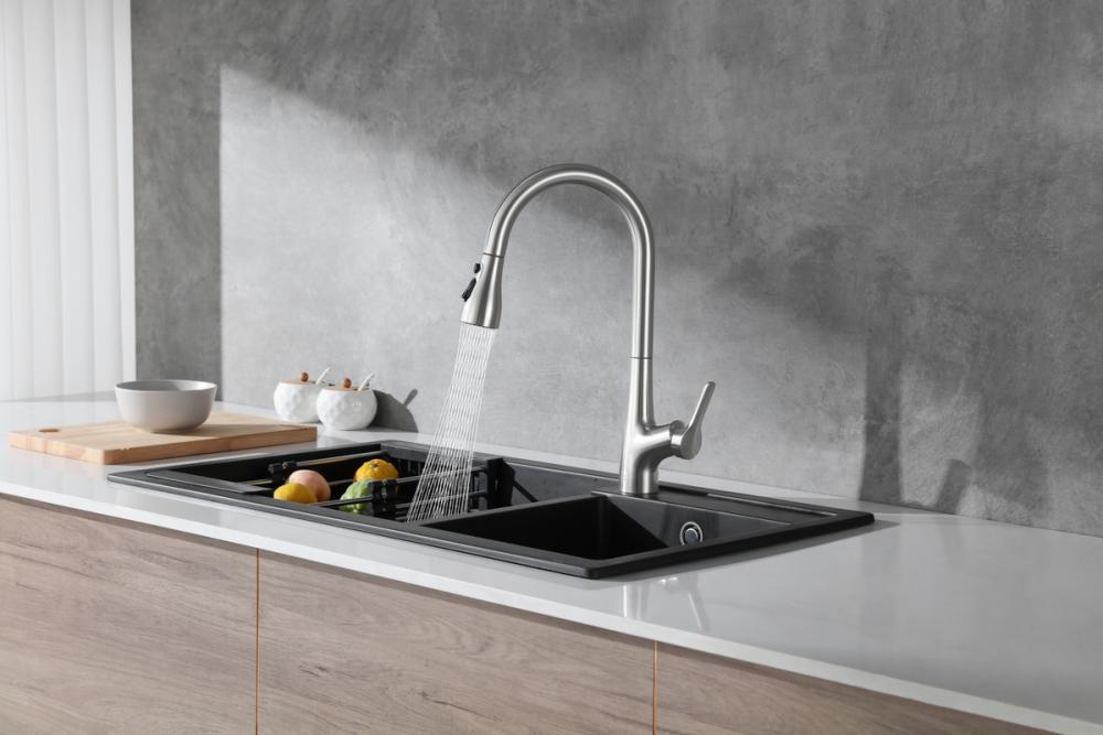The retractable pull-down hose offers flexibility and reach, making it easier to rinse, clean, and fill various kitchen items. No more struggling to reach the corners of your sink.