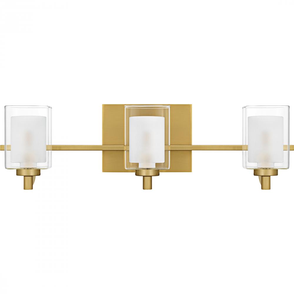 This modern posh wall sconce and vanity light collection features a simplistic design with several classic finish options: choose from brushed nickel, polished chrome, or brushed gold. The inner heavy glass is sand blasted inside and encased within outer c