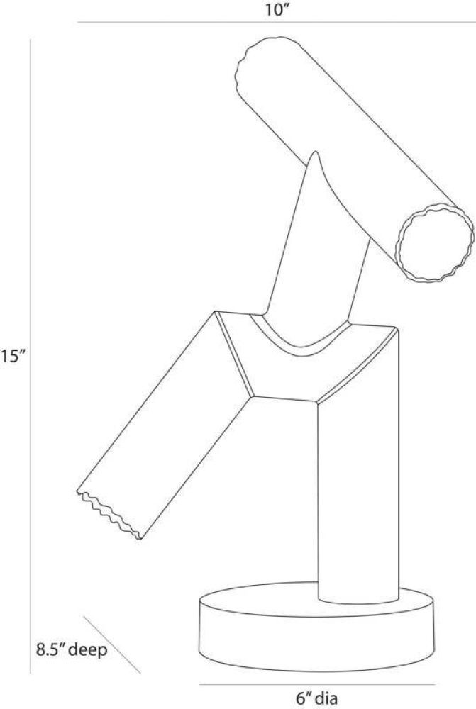 We distilled a figure to its most essential elements. With its dynamic dancing pose, this burnt iron piece appears to have a twisting motion as it suspends on a single leg. Torched details accent the end of every "limb." Mounted on a rounded base of white marble. Finish will vary.
