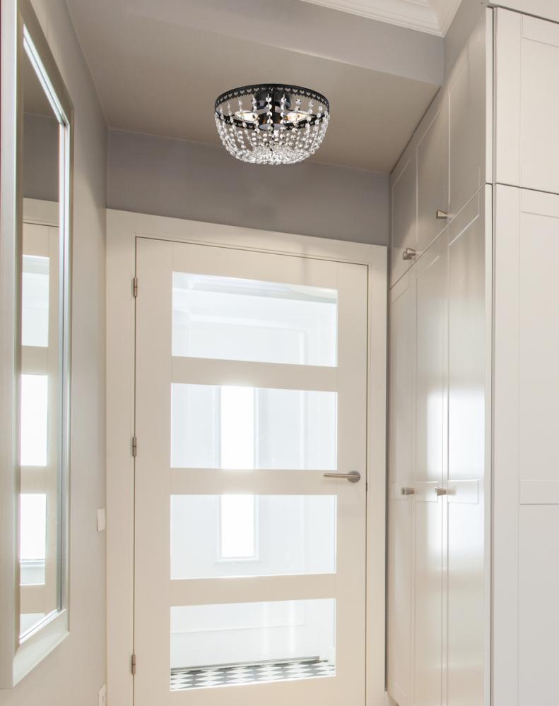Install this flush mount in any room to give an elegant look. This stunning light features hand painted finish and clear brillant crystals which gives a classy look. Set a cozy atmosphere when you switch on this dazzling fixture and captivate your guests.
