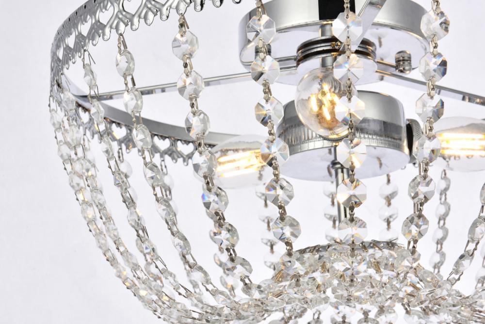 Install this flush mount in any room to give an elegant look. This stunning light features hand painted finish and clear brillant crystals which gives a classy look. Set a cozy atmosphere when you switch on this dazzling fixture and captivate your guests.
