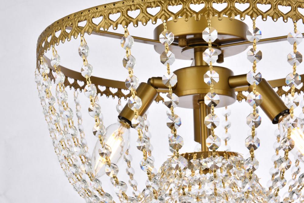 Install this flush mount in any room to give an elegant look. This stunning light features hand painted finish and clear brillant crystals which gives a classy look. Set a cozy atmosphere when you switch on this dazzling fixture and captivate your guests.